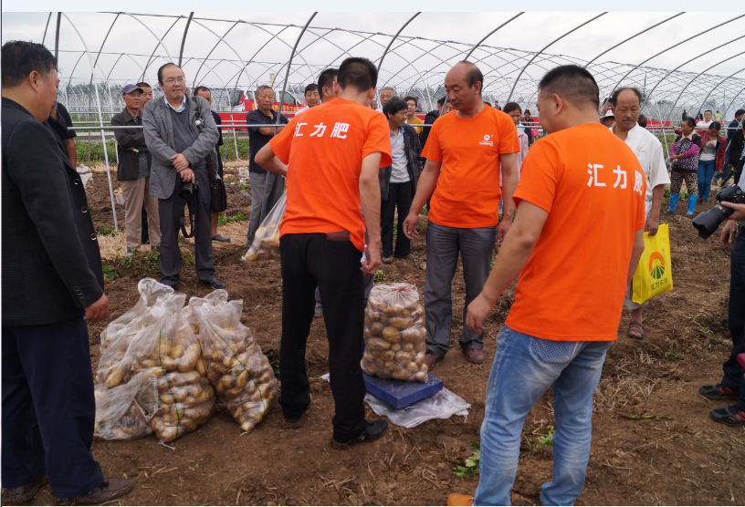 繼上月8日,匯力新型生態肥料在中國最大的元胡種植地陜西省固城縣舉行現場觀摩會,對比效果懸殊,品質得到到會人員一致認可后,16日,匯力新型肥料在陜西漢中進行的土豆示范效果再次引起轟動,面對匯力肥的神奇效果,不僅到會的種植戶驚呆了,政府領導驚呆了,連聞訊趕來的專家和媒體也驚呆了,紛紛豎起大拇指。