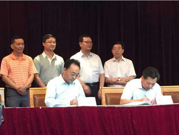 集團董事長趙思儉(左)與省農行副行長陳實(右)簽訂合作協議
