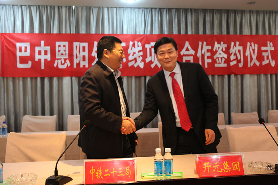1月15日,集團投資參與的四川省道302線巴中市恩陽區過境段(外環線)建設項目合作簽約儀式在中鐵二十三局三公司正式舉行,集團董事長、總裁趙思儉、副總裁、恩陽開元投資管理有限公司董事長譚昌敏、中鐵二十三局三公司黨委書記李治強及相關人員出席會議。