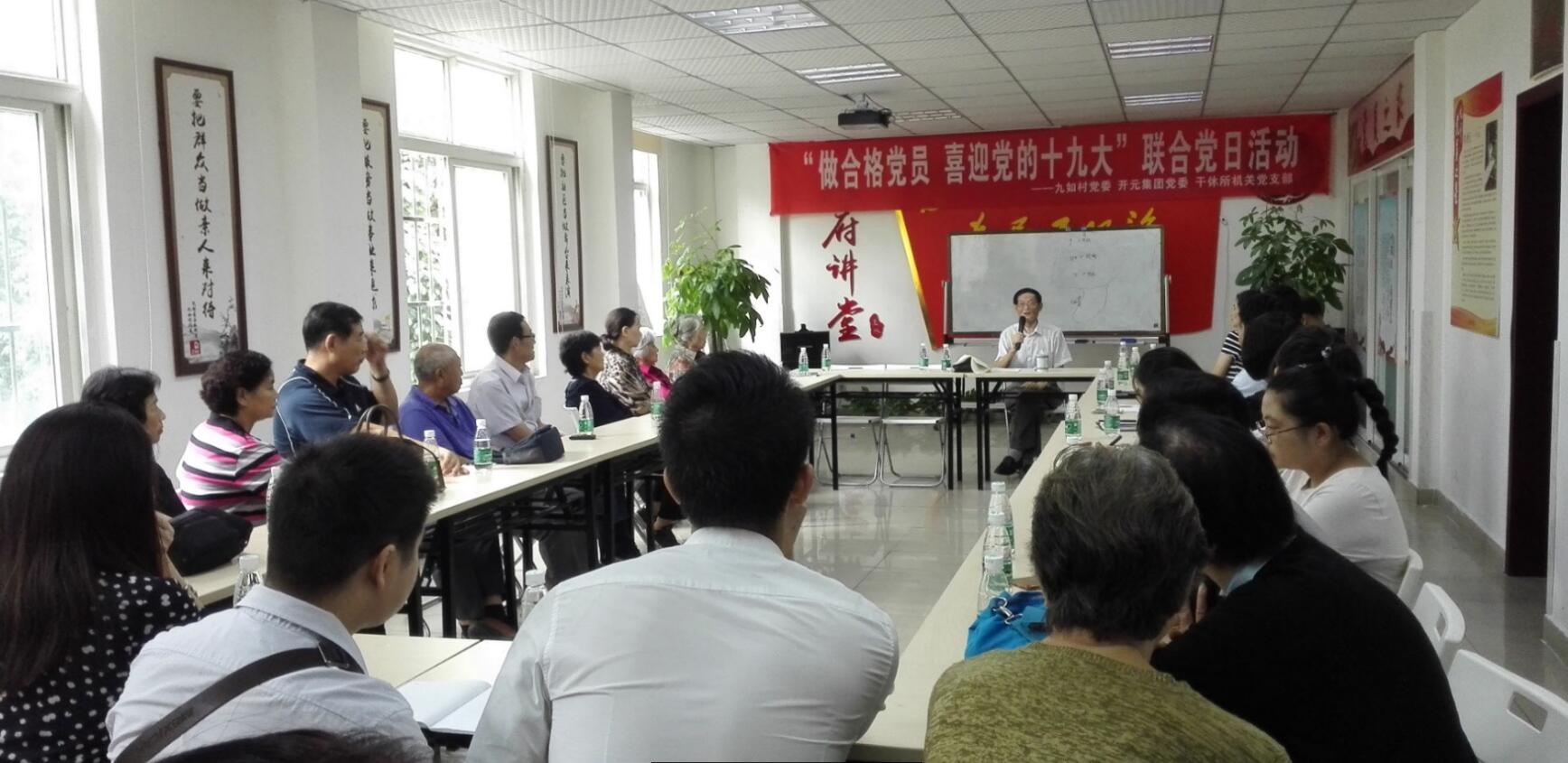 為迎接黨的十九大召開,在國慶、中秋雙節(jié)前夕,集團(tuán)黨委與社區(qū)黨委本著“持續(xù)推動黨的教育,強(qiáng)化黨性認(rèn)識”的目的和宗旨,于9月20日上午9:30,在九茹村社區(qū)二樓會議室,開展了“做合格黨員 喜迎黨的十九大”聯(lián)合黨日活動,包括集團(tuán)黨委、匯力黨支部、開元礦業(yè)黨支部、社區(qū)四個黨支部黨員等共計50余人參加了此次活動。