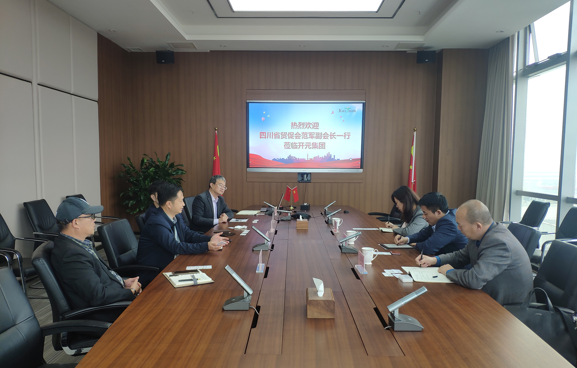 杜總為客人介紹了開元集團(tuán)發(fā)展歷程,重點(diǎn)介紹了開元在對外經(jīng)貿(mào)方面的業(yè)務(wù)經(jīng)營情況和發(fā)展規(guī)劃,各貿(mào)易板塊負(fù)責(zé)人匯報(bào)了當(dāng)前外貿(mào)業(yè)務(wù)過程中遇到的困難和障礙。杜總希望省貿(mào)促會(huì)能持續(xù)發(fā)揮好對外經(jīng)貿(mào)領(lǐng)域的平臺(tái)作用,為企業(yè)排憂解難,助力企業(yè)健康可持續(xù)發(fā)展。