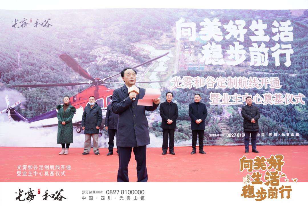 2021年1月2日,新年伊始,開元集團在美麗的光霧和谷舉辦了直升機定制航線開通暨業(yè)主中心奠基儀式。光霧和谷項目公司和下屬施工單位的同事們精心準(zhǔn)備、嚴(yán)陣以待,熱烈歡迎各界嘉賓光臨。上午9時,活動正式開啟,南江當(dāng)?shù)卣嚓P(guān)領(lǐng)導(dǎo)、光霧和谷部分業(yè)主代表及光霧山鎮(zhèn)廣大群眾共數(shù)百人蒞臨活動現(xiàn)場,與工作人員一起共同見證光霧和谷項目邁入新的階段。