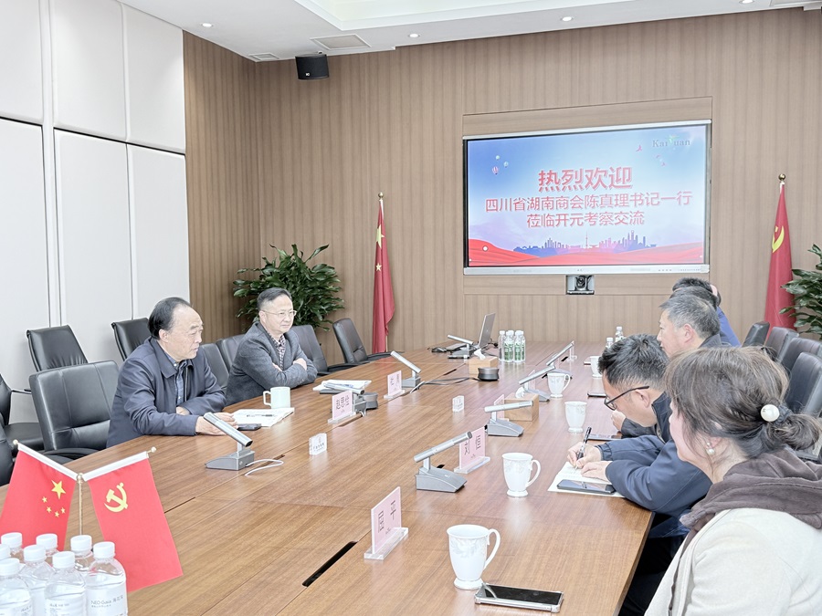 17日下午,四川省湖南商會書記、長江證券成都首席投資顧問,營銷總監(jiān)陳真理、 岳陽市政協(xié)副秘書長、岳陽市駐成渝漢招商工作組主任李理、成都真誠包裝材料有限公司董事長屈平等一行六人蒞臨開元集團考察交流,集團董事長趙思儉、總裁杜勇接待了陳真理一行,雙方進行了長達兩小時的溝通和交流。