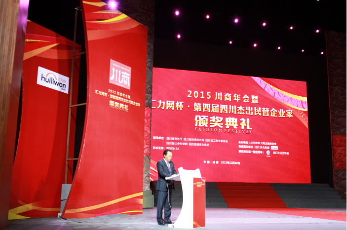典禮現場,集團董事長趙思儉代表冠名單位——匯力網致辭。趙總指出:“2015年,是“十二五”的收官之年,也是“十三五”的開局之年,更是四川民營企業沖破經濟霧霾,取得豐碩成果的一年。在這一年里,國際經濟形勢持續低迷,國內經濟換檔減速,各行各業面臨嚴峻挑戰,眾多民營乃至國有企業經受著生死考驗。但也正是在這一年,四川涌現出了一大批敢創新、有擔當、經營卓有成效的民營企業家,他們帶領著自己的企業充分發揮自身優勢,發揚創新創業精神,緊緊把握國家戰略實施帶來的各項機遇,精準布局,準確研判,不斷進行企業生存發展之路的探索,轉型升級,穩中求進,在新常態下呈現出新的生機,為穩增長、調結構、促發展、惠民生做出了積極貢獻。一批企業家朋友積極返鄉投資興業,帶領家鄉人民致富,成為助力四川經濟騰飛的重要力量。第四屆四川十大杰出民營企業家推選活動中評出的年度人物獎、十大杰出民營企業家、杰出川商創新獎和川商返鄉投資貢獻獎就是對他們的高度肯定和褒揚!