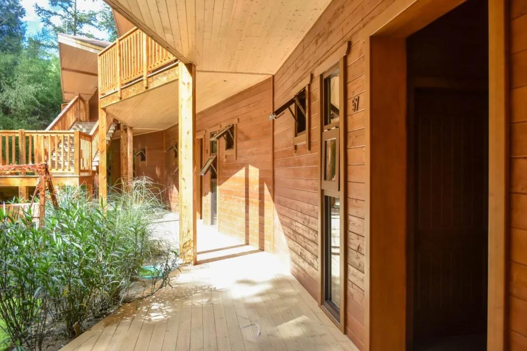 客房分為“巴山”及“秋水”兩個(gè)區(qū)域,由19棟全木結(jié)構(gòu)建筑組成,擁有56間45平米-138平米的豪華客房與獨(dú)立套房。每間客房均設(shè)有寬敞露臺(tái),目之所及滿(mǎn)山翠綠,碧波蕩漾。