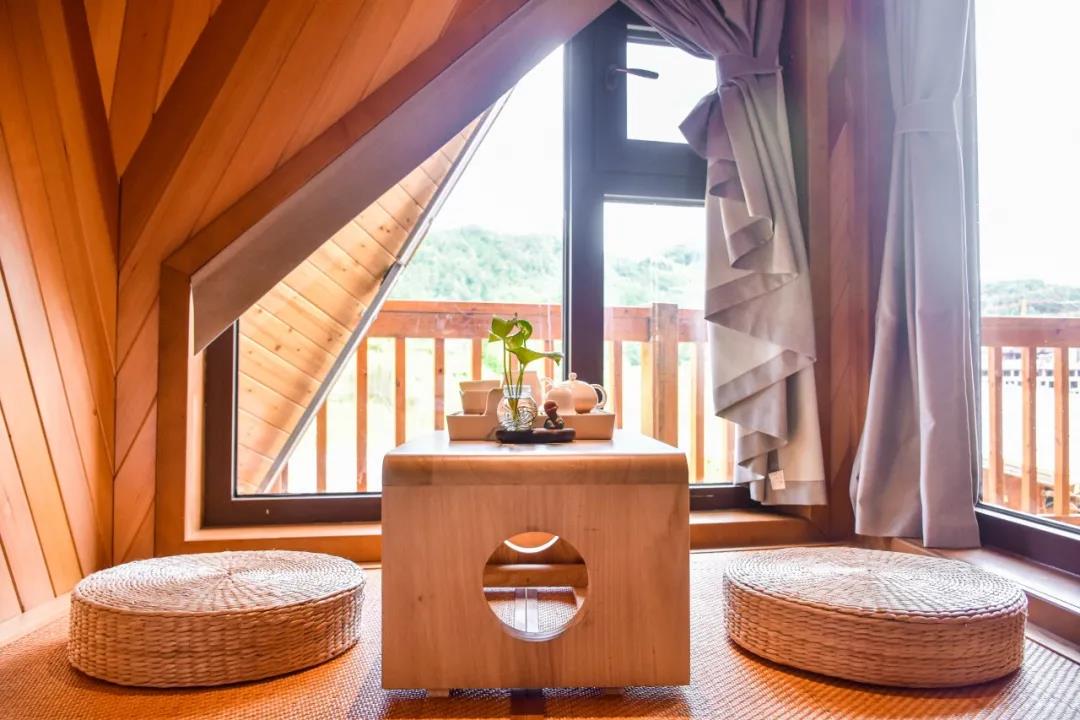 在木屋文化的發(fā)源地愛(ài)沙尼亞,木屋被稱(chēng)為“同居住者共呼吸”的建筑。因?yàn)槟疚萁Y(jié)構(gòu)建筑通過(guò)合理設(shè)計(jì)與布局,適量吸收太陽(yáng)光線(xiàn),雨季還能調(diào)節(jié)室內(nèi)濕度。走進(jìn)客房?jī)?nèi),便能聞到木材散發(fā)出富含芬多精的原木清香。角落里特設(shè)的榻榻米和精致茶臺(tái),更是讓客人得以在迷人景致中舒坦心境,享受靜謐空間。