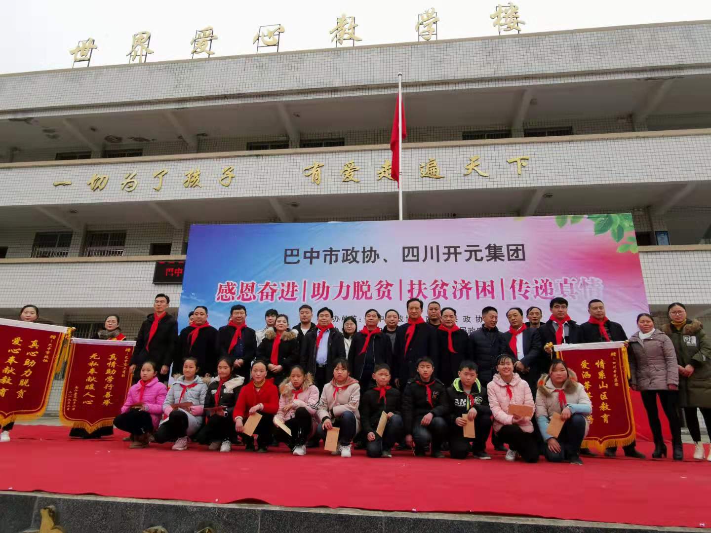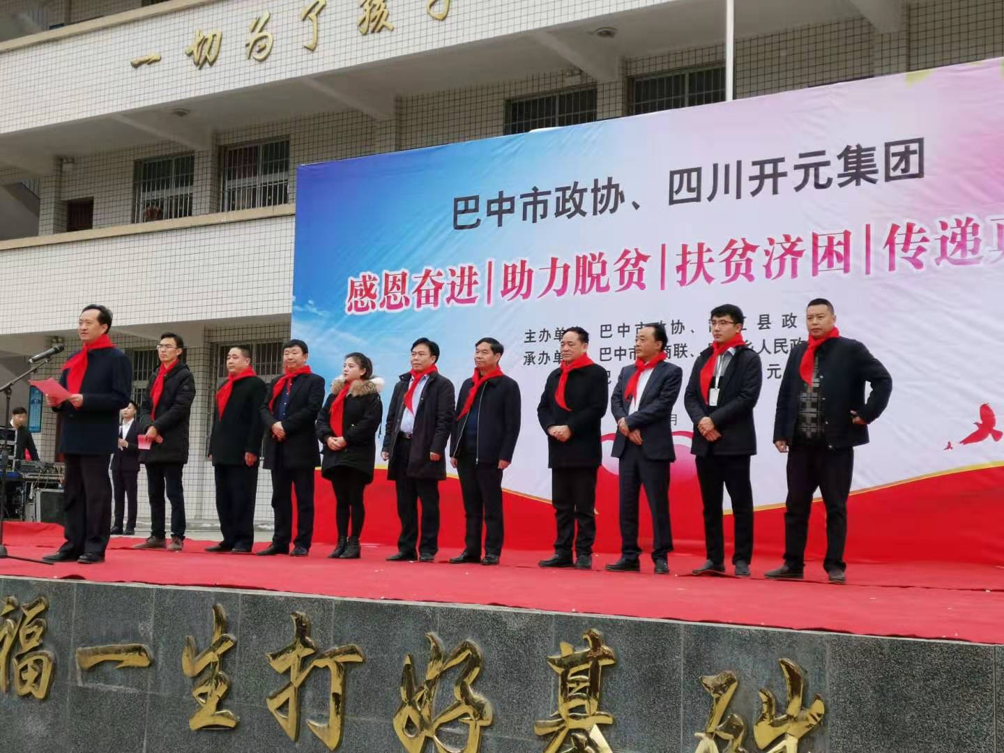2月22日,在巴中市政協(xié)“創(chuàng)引幫”活動(dòng)的感召下,由市政協(xié)、四川開元集團(tuán)主辦,市工商聯(lián)、南江縣委縣政府,南江縣政協(xié)、寨坡鄉(xiāng)黨委政府、巴商總會(huì)和四川南江光霧和谷旅游開發(fā)公司協(xié)辦的寨坡鄉(xiāng)助學(xué)、助老、助殘活動(dòng)在寨坡小學(xué)隆重召開。